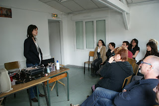 Pour finir le week-end, les stagiaires purent tenter un maquillage de leur choix afin d’ « accentuer » un personnage précis d’une pièce en cours de préparation, par exemple. Les indications et conseils d’Elodie furent grandement appréciés !
